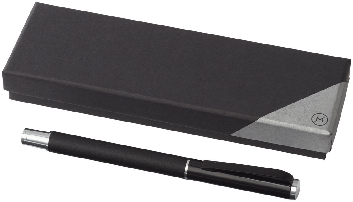 Шариковая ручка Pedova. Ручка роллер в эксклюзивном дизайне. Нижняя часть корпуса выполнена с элементом кожи ПУ, матовая верхняя часть корпуса и хромированные акценты. Черный стержень роллер. Упакована в подарочную коробку Marksman® для двух принадлежностей. Металл.